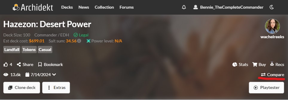 All this is easy due to the really cool deck comparison feature from Archidekt! I first did this a couple years ago when I compared my signature Grothama, All-Devouring Commander deck to the sample decklist generated by EDHREC.